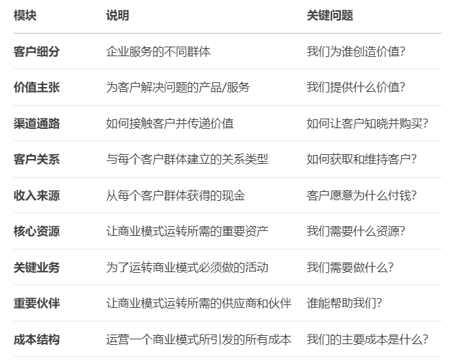 商业模式画布是一种用来描述、分析和设计商业模式的视觉化工具,由9个基本模块组成。它就像一份商业蓝图,帮助企业系统性地思考如何创造、传递和获取价值。